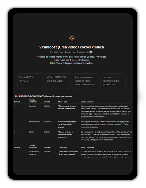 La plantilla más completa para tener tus borradores, guiones y calendario completo de contenidos en un solo lugar.